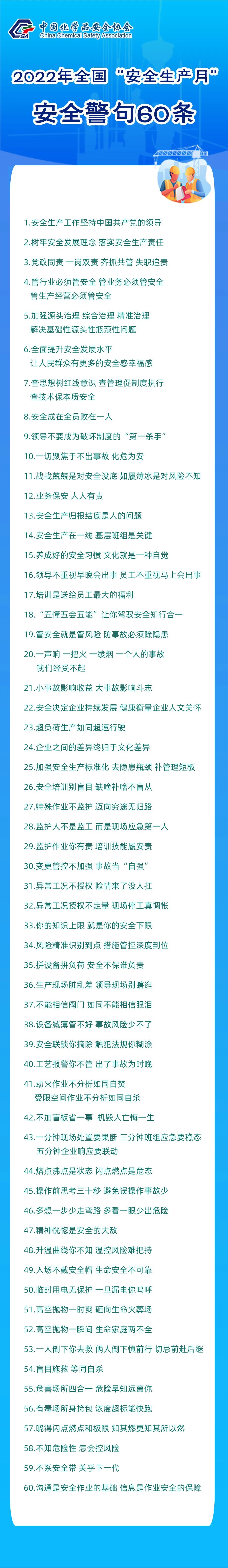 2022年全国“安全生产月”安全警句60条