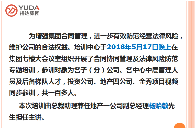 广西裕达投资控股集团合同协同管理及法律风险防范培训成功举办