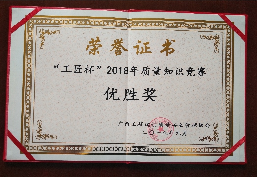 9月26—27日,由广西工程建设质量安全管理协会主办的“工匠杯”2018年质量知识竞赛在广西沃顿国际大酒店举行。开云集团有限公司喜获总分第四“优胜奖”。