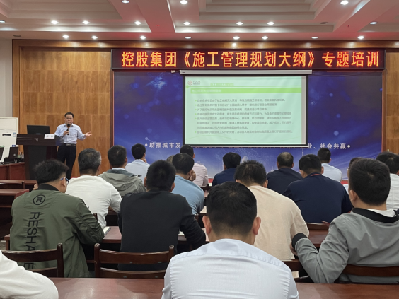 此次培训由控股集团总部品质中心副总经理廖钞担任讲师。廖总经理首先讲解《施工管理规划大纲》对项目管理目标、实施的方法、具体的管控措施、过程的风险分析及预控等具有重要的意义,指导学员们对项目的事前施工管理规划进行系统性思考和梳理。其次,与学员们探讨《施工管理规划大纲》的编制目的,通过策划提前对项目进行全周期推演,从而避免项目销售中心、样板房、项目部馆舍、硬件设施等不合理拆迁和重复建设,合理布置场地,畅通人、材、机等要素,加快项目进度,减少成本,节约费用,为项目从始至终盈利和高质量发展打下坚实的基础。最后,通过讲解编制《施工管理规划大纲》的主要内容,对项目概况、项目运营目标、工程计划管理、项目全周期策划、专项策划、项目重难点分析、装修专篇、配套管线和总平专篇这八项重点编制内容对学员进行培训,提升学员们的专业技能与从业素质。