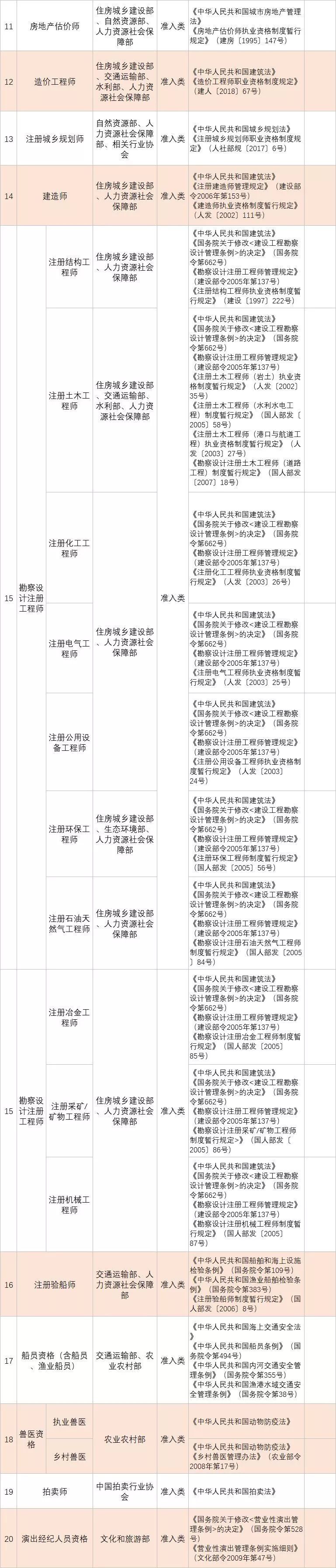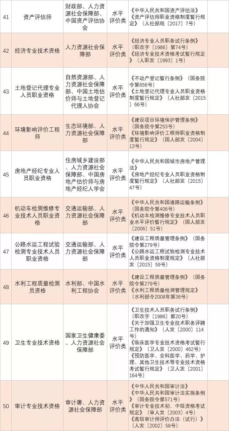 共计139项职业资格,专业技术人员职业资格58项(准入类35项、水平评价类23项),技能人员职业资格81项(准入类5项、水平评价类76项)。