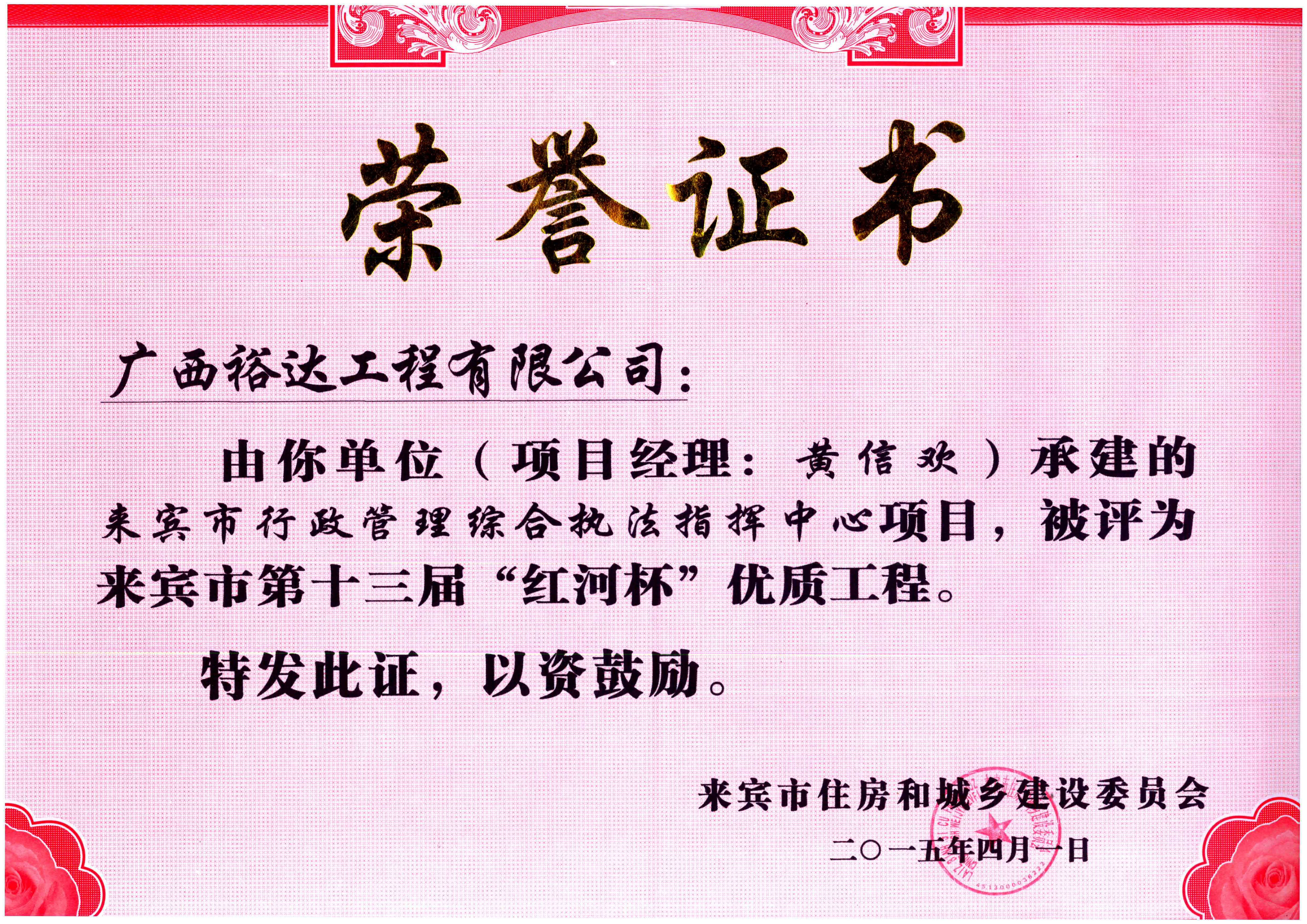2015年来宾市第十三届“红河杯”优质工程