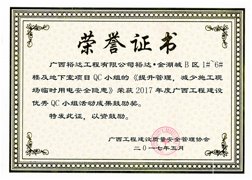 2017年广西工程建设优秀QC小组活动成果鼓励奖