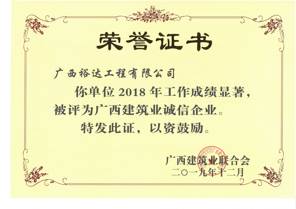 2018年度广西建筑业诚信企业